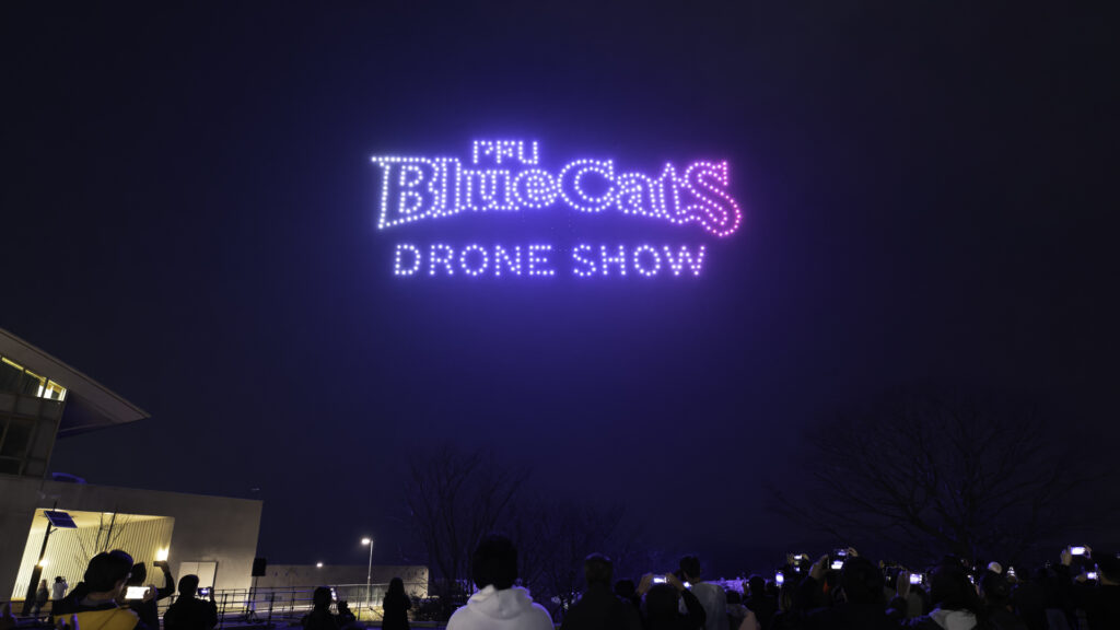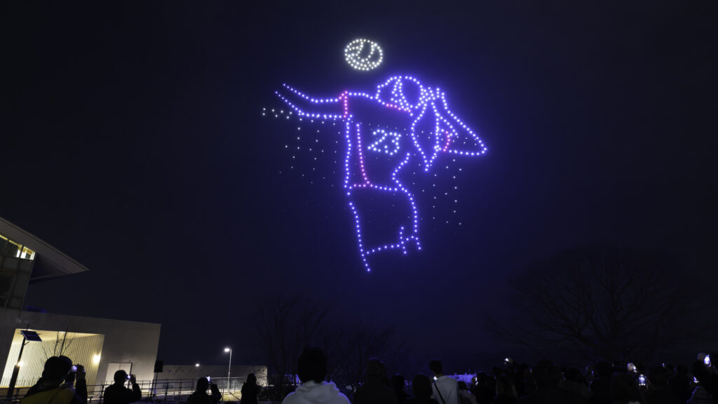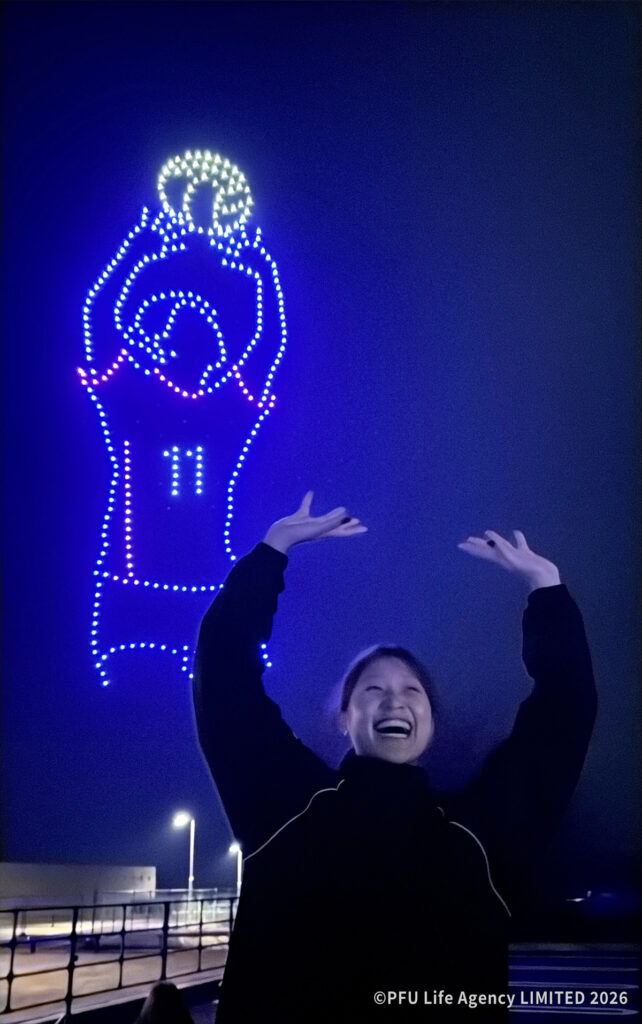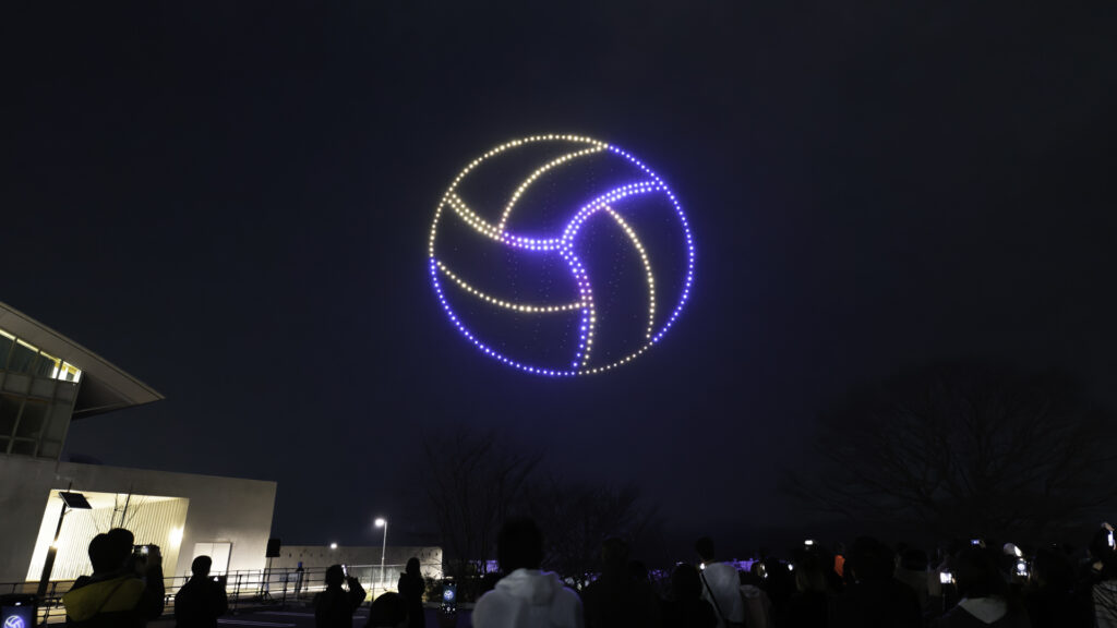 世界最高峰を目指す大同生命SV.LEAGUEに所属する女子プロバレーボールチーム PFUブルーキャッツ石川かほくは、2026年3月28日(土)・29日(日)ホーム最終節において、プロバレーボールとして国内初となる屋外ドローンショー「BlueCats Night Canvas supported by Drone Show Japan」を開催しました。