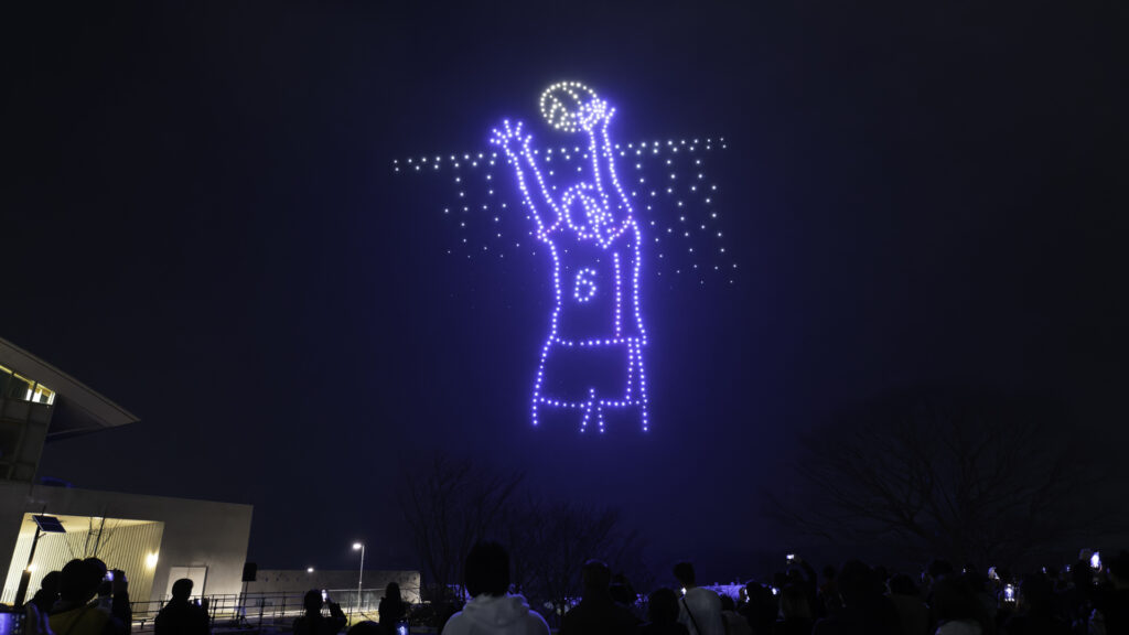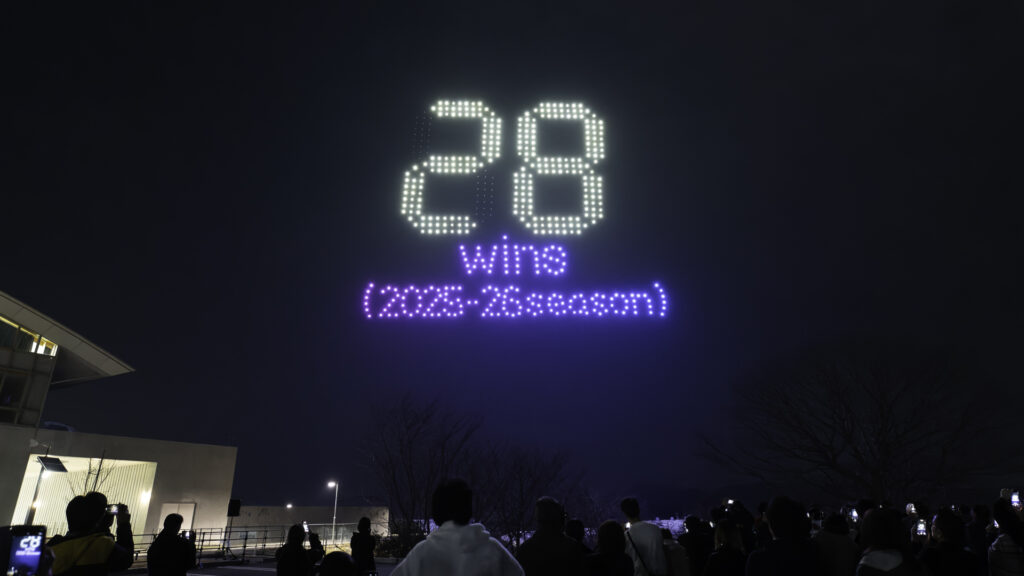 本企画は、ホーム最終節のプレゼンツマッチスポンサーであり、ブルーキャッツ唯一のエンターテインメントスポンサーであるドローンショー・ジャパンと連携し、シーズンを通してご声援いただいたファンや地域の皆さまへの感謝を込めて実施する特別演出で行われ、2日間合わせて約1,100名の方にご観覧いただきました。