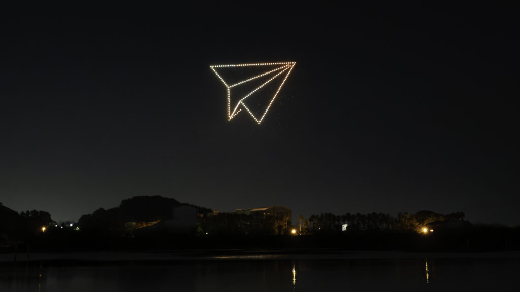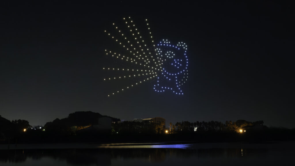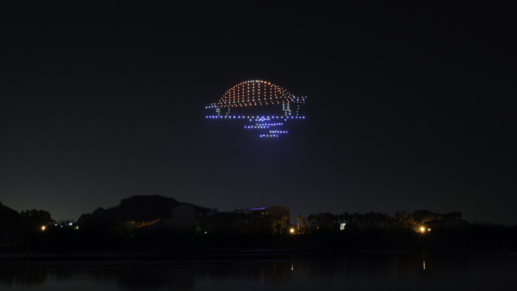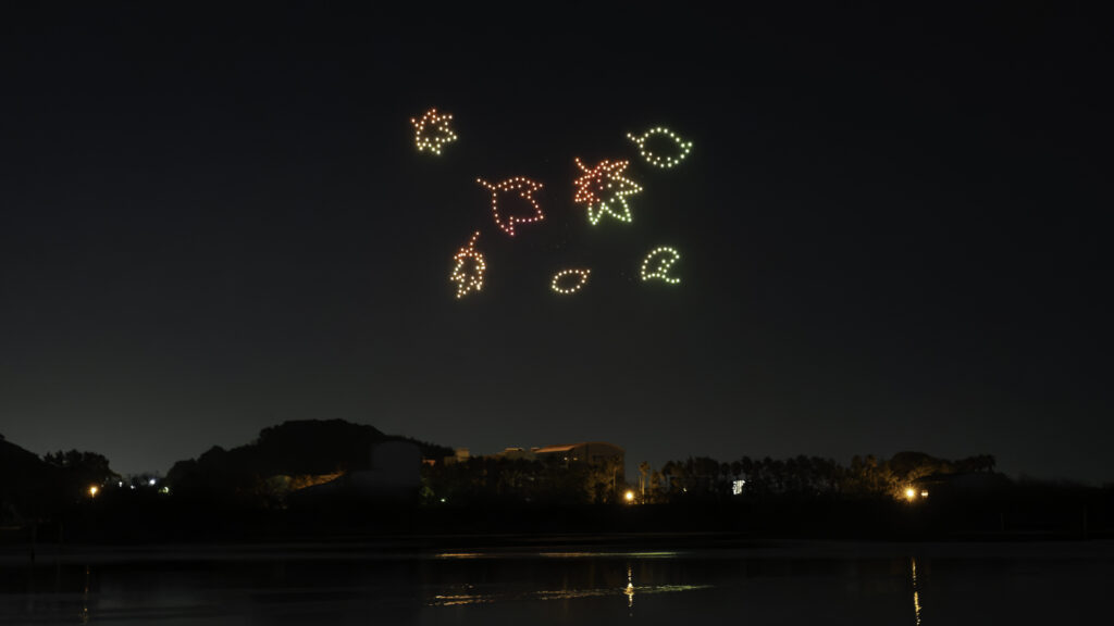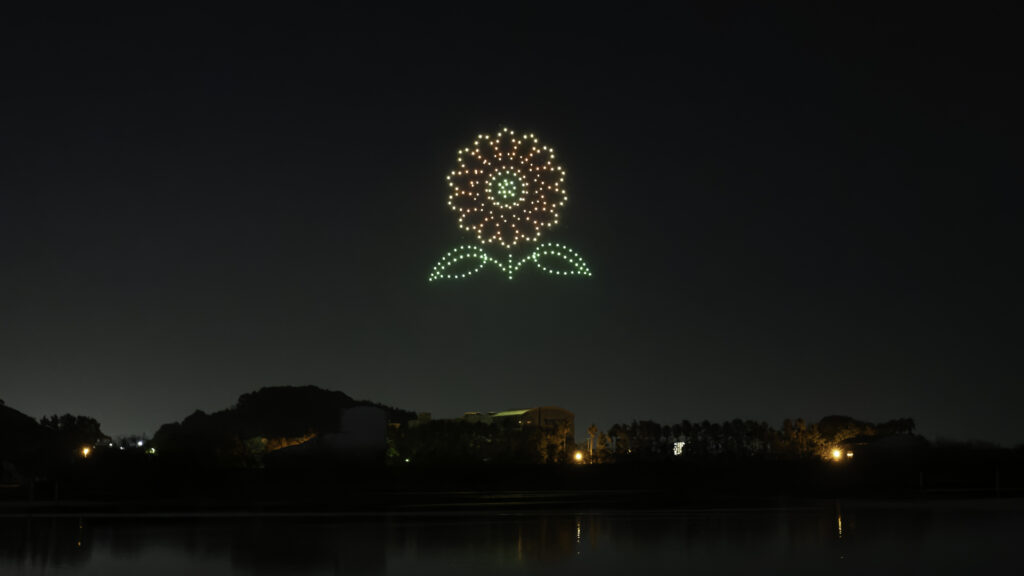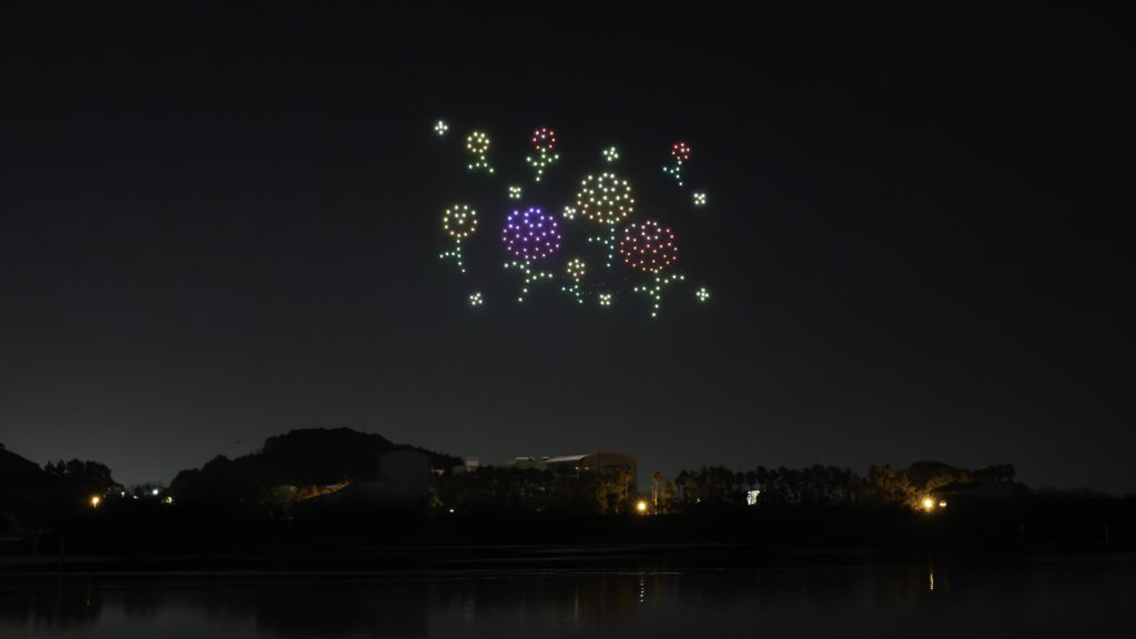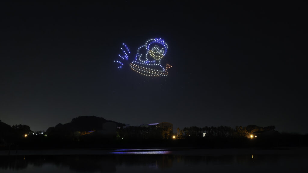 本イベントは、浜松市・地域力向上事業採択プロジェクトとして、補助金を活用した官民一体の取り組みで、フィナーレを飾るのは、地域の企業・団体・住民が卒業生のために贈るドローンショー。三ヶ日みかん、浜名湖の新瀬戸橋、桜などが夜空に浮かび上がりました。