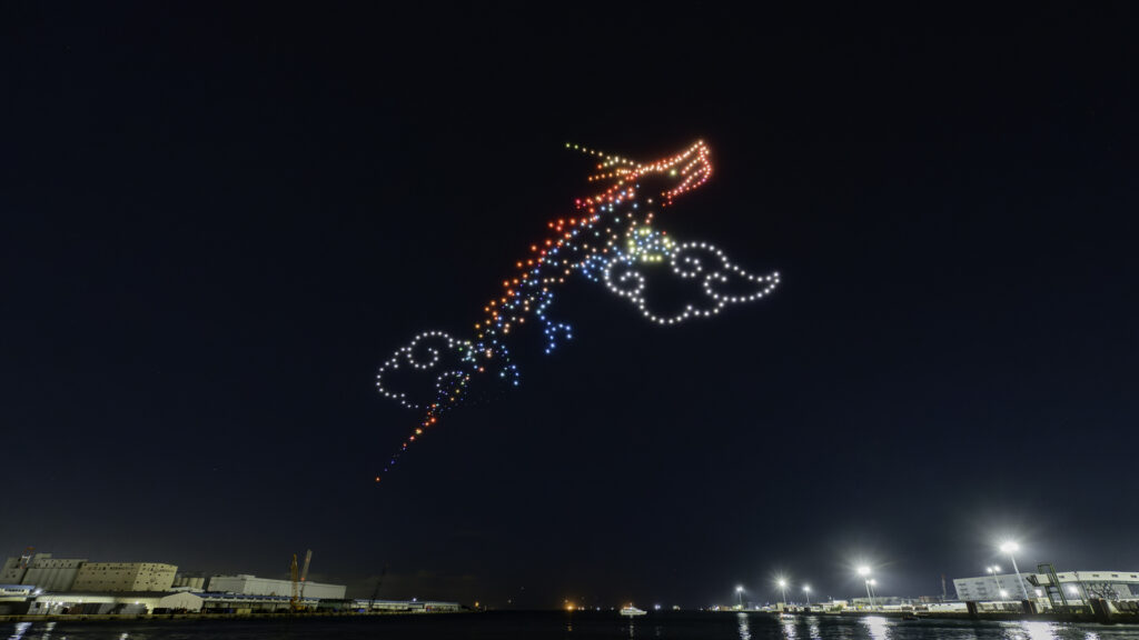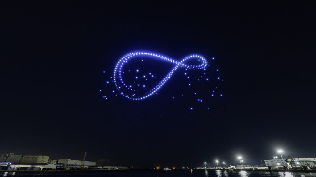 2025年11月3日(月・祝日)、大阪の「ATCウミエール広場(大阪市住之江区南港北)」にて「ATC オータムナイトドローンショー」を開催。秋の大阪港を舞台に無数のドローンの光が夜空を舞い、涼しい秋風の中、1,000人を超える多くのご観覧者にご来場いただきました。