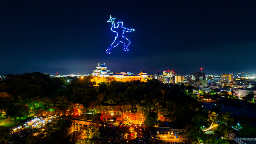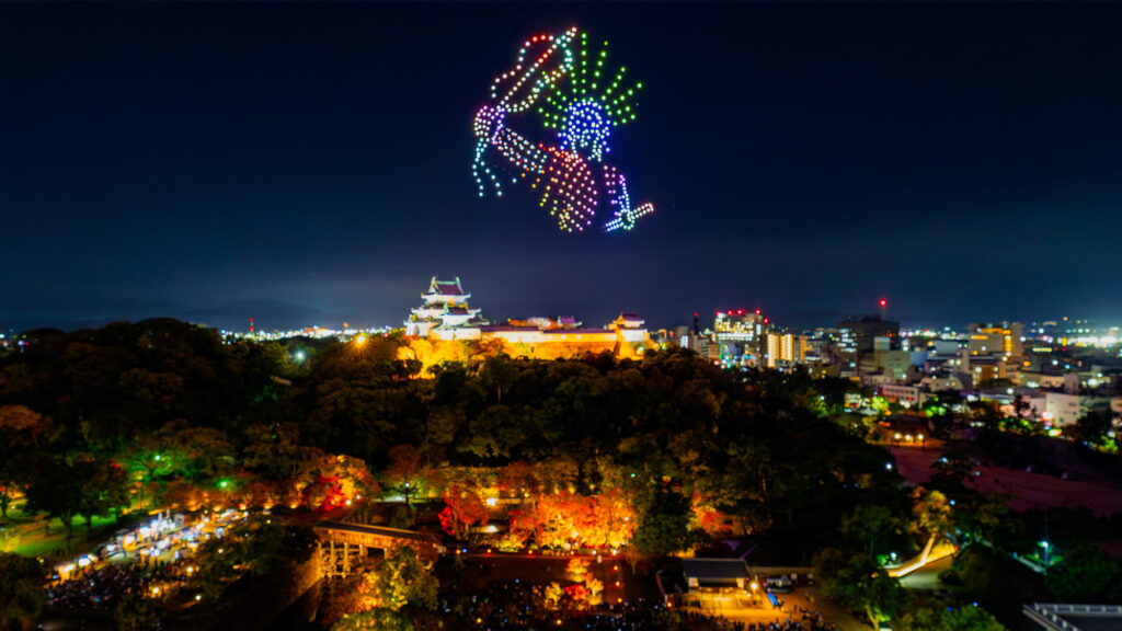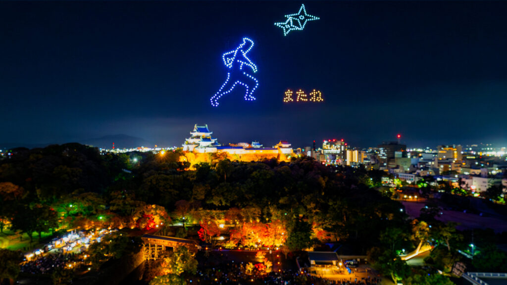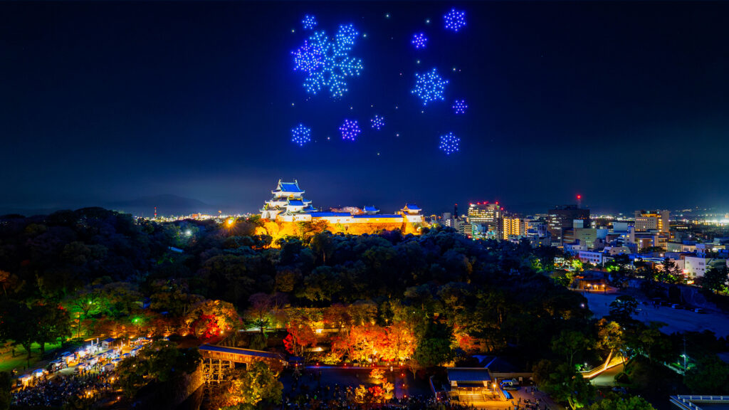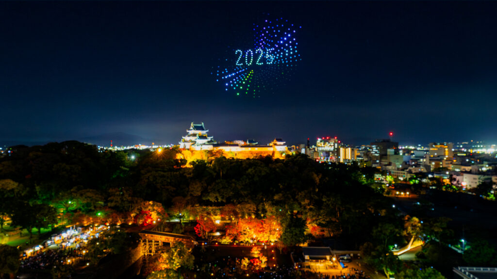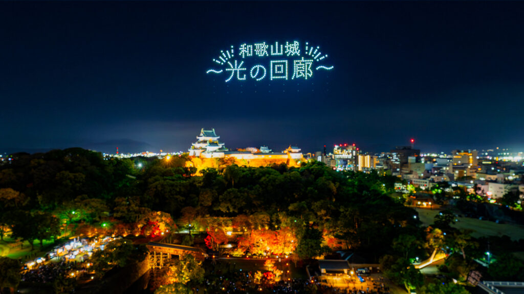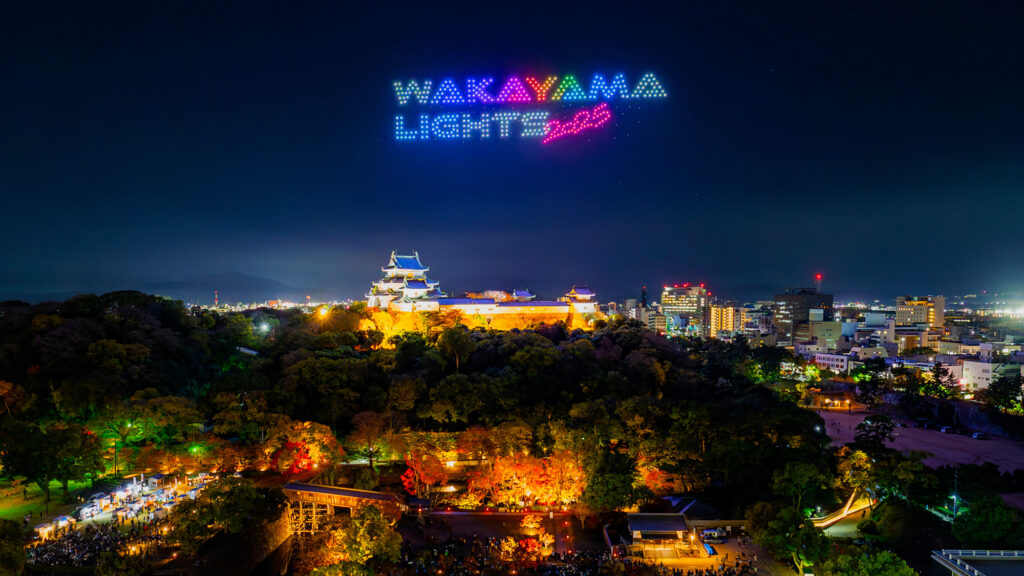 和歌山市主催のドローンショー「WAKAYAMA LIGHTS 2025」の第2部「歴史を彩る光のプリズム」を、2025年11月24日(月・祝)に和歌山城天守閣上空で開催いたしました。2024年に初めて実施したドローンショーは2万人を超える大反響となり、2025年は全3回の3部作として展開。企画制作を、株式会社タカショーデジテック、株式会社ドローンショー・ジャパンで担当いたしました。