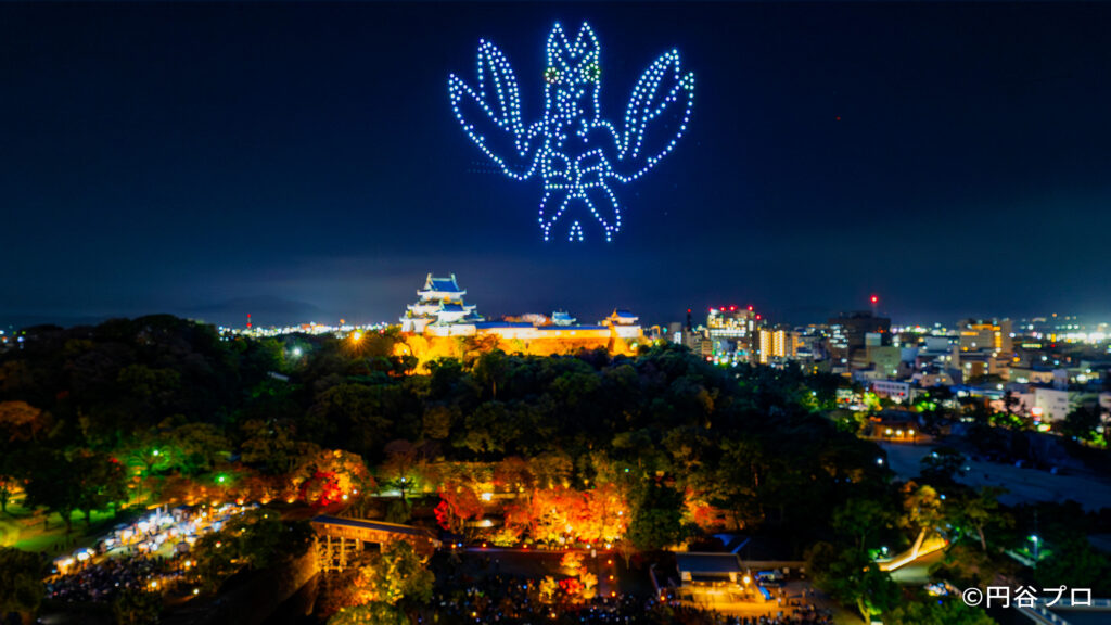 和歌山城ドローンショー「WAKAYAMA LIGHTS 2025」第2部・歴史を彩る光のプリズム(和歌山/500機)