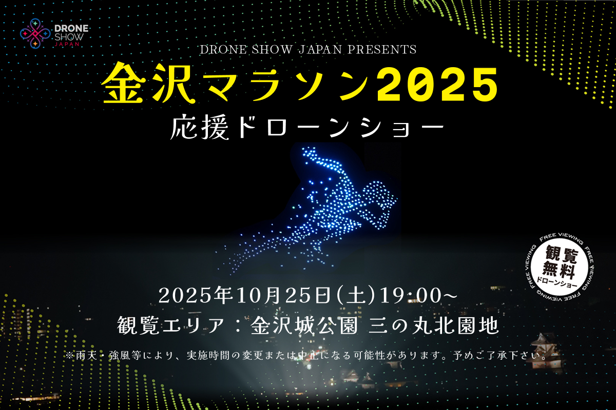 マラソン大会で国内初!金沢城の夜空を彩る「金沢マラソン2025 応援ドローンショー」を10/25(土)に開催