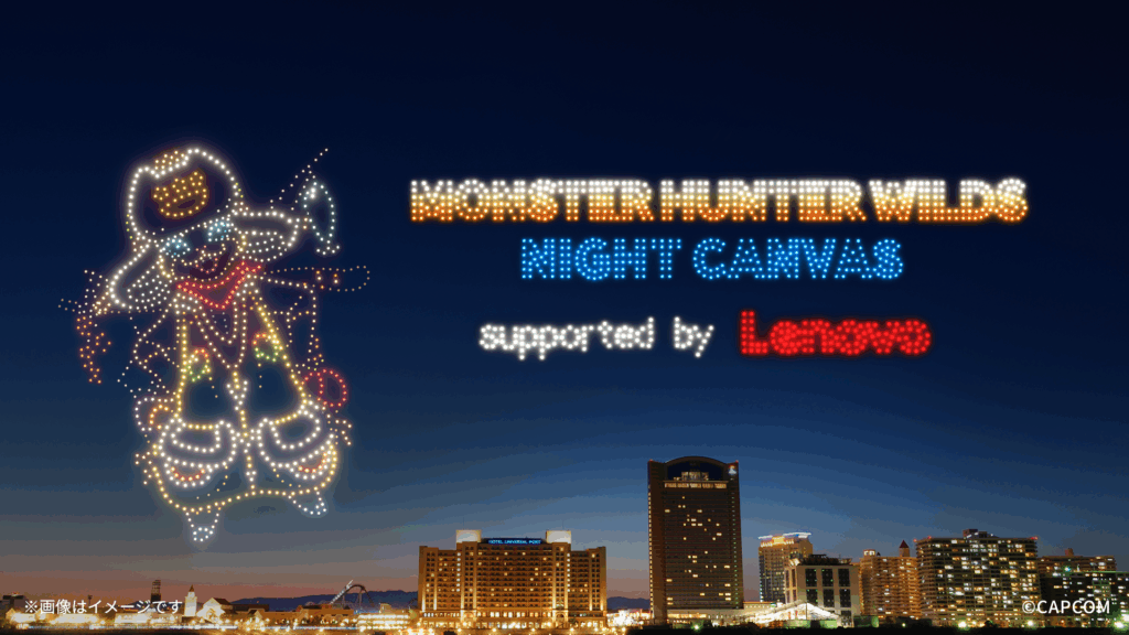 株式会社ドローンショー・ジャパン(以下「ドローンショー・ジャパン」)は、カプコンの人気ゲーム「モンスターハンターワイルズ」とのコラボレーションによる、ドローンショー『MONSTER HUNTER WILDS NIGHT CANVAS supported by Lenovo(モンスターハンターワイルズ・ナイトキャンバス・サポーテッド・バイ・レノボ)』を、2025年12月18日(木)~21日(日)の4日間、大阪府のユニバーサル・ハーバーデッキ(大阪府大阪市此花区桜島1-1)で開催。また、ドローンショーの開催期間中、ユニバーサル・ハーバーデッキにてポップアップブースを展開いたします。